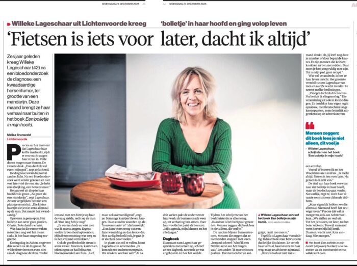 Het leven lachte businesscoach Willeke Lageschaar toe. Een fijne relatie, leuke klanten en de vrijheid om te ondernemen op eigen voorwaarden. Ambitieus, met veel aandacht voor gezond en fit leven. Het ging lekker! Totdat een medisch onderzoek haar idee over de toekomst plots omverblies. Ze bleek een kwaadaardige hersentumor te hebben.